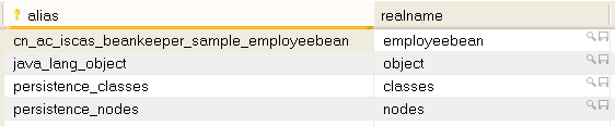 从图 3 和图 4 我们可以看到, cn.ac.iscas.beankeeper.sample.EmployeeData 类的工具被生存到了 employeebean 表中。